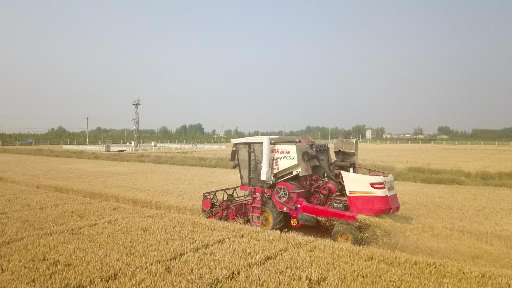 圖為中國(guó)科學(xué)院南皮生態(tài)農(nóng)業(yè)試驗(yàn)站的“小偃60”耐鹽堿小麥“開(kāi)鐮”收割。(受訪者供圖)