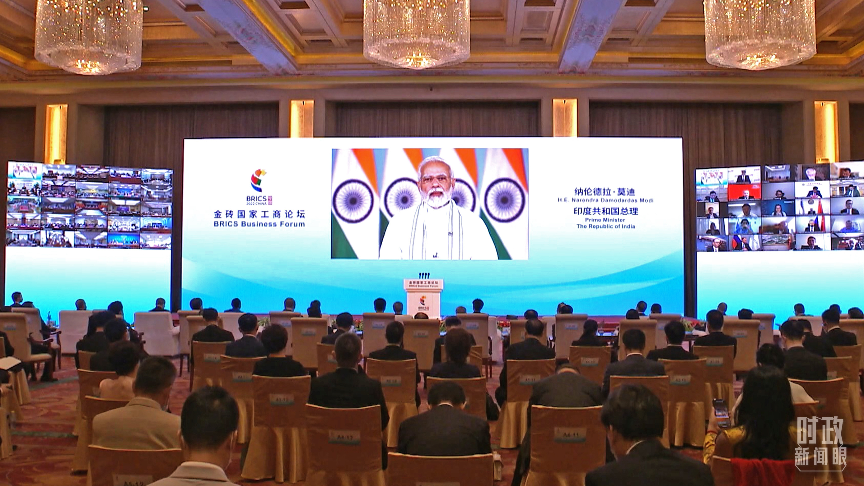 時隔五年,中國再次作為主席國主辦金磚會晤。今年金磚國家工商論壇以線上線下相結(jié)合的方式舉行。金磚五國領導人齊聚當晚的論壇開幕式,南非總統(tǒng)拉馬福薩、巴西總統(tǒng)博索納羅、俄羅斯總統(tǒng)普京、印度總理莫迪也以視頻方式出席并致辭。