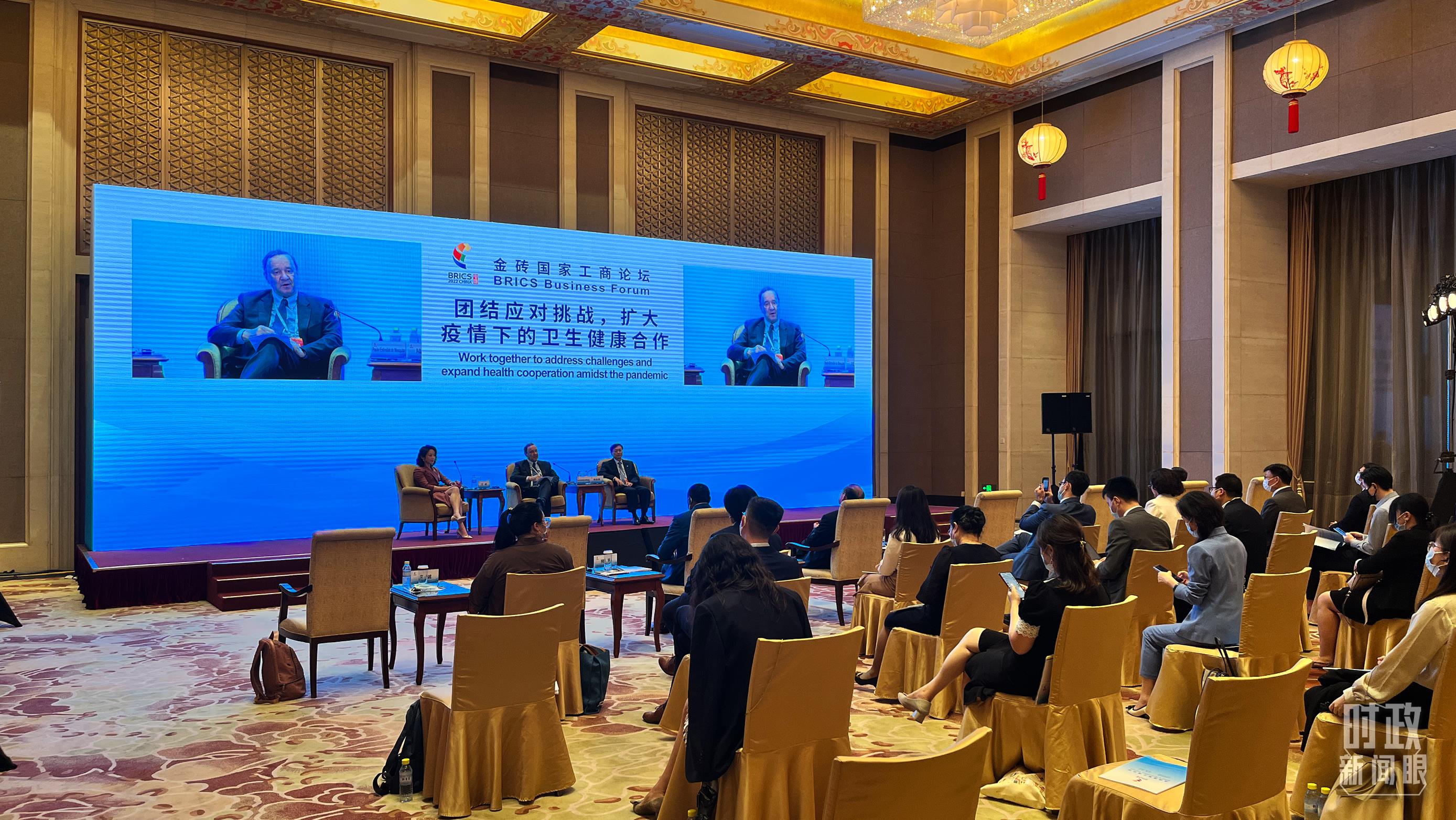 △2022年金磚國家工商論壇還設置了5個專題研討議題,這是主題為“團結(jié)應對挑戰(zhàn),擴大疫情下的衛(wèi)生健康合作”專題研討分會場。(總臺央視記者陸泓宇拍攝)