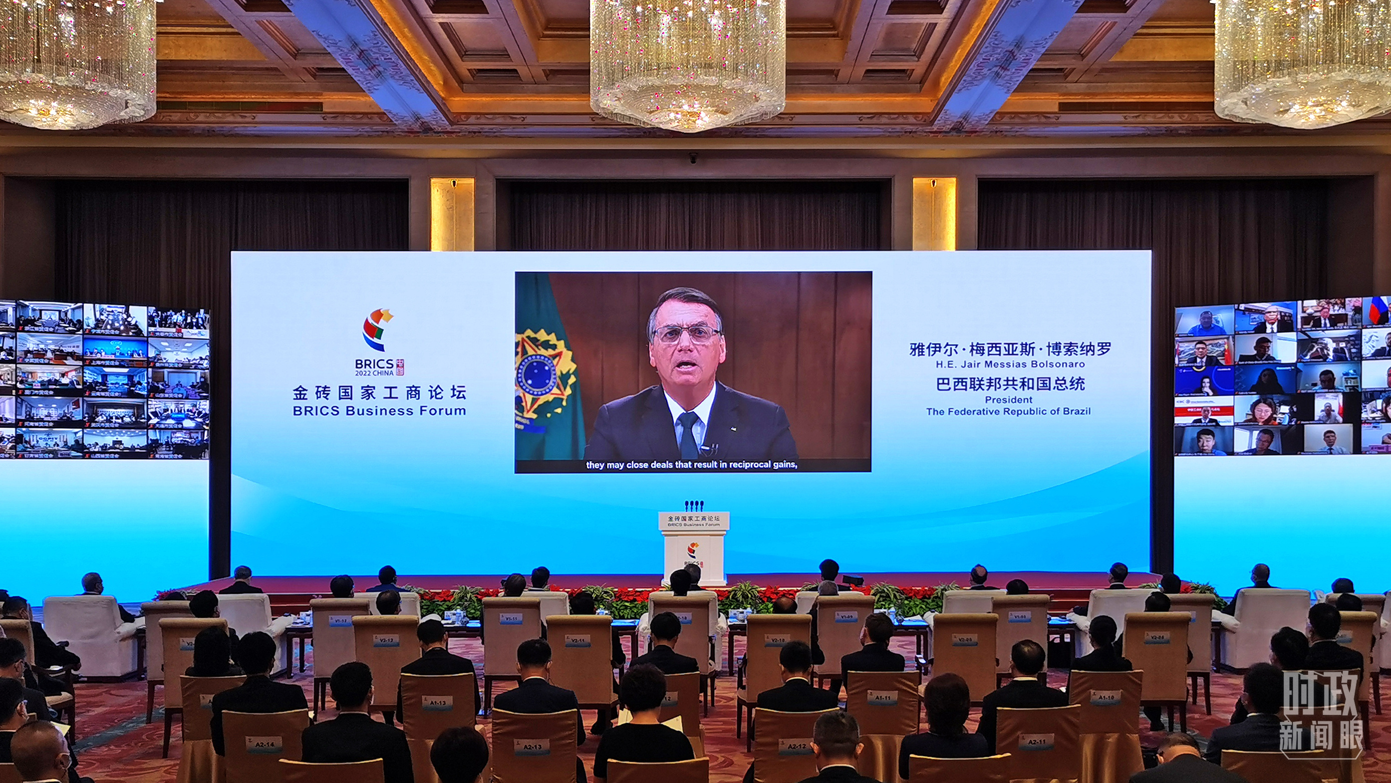 △巴西總統(tǒng)博索納羅出席論壇開幕式并致辭。(總臺央視記者楊波拍攝)