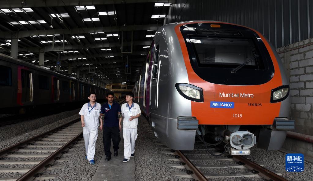 2018年6月27日,在印度孟買,中印雙方工作人員在孟買地鐵一號(hào)線車輛段工作。該地鐵線路車輛由中車南京浦鎮(zhèn)車輛有限公司制造。新華社記者張迺杰攝