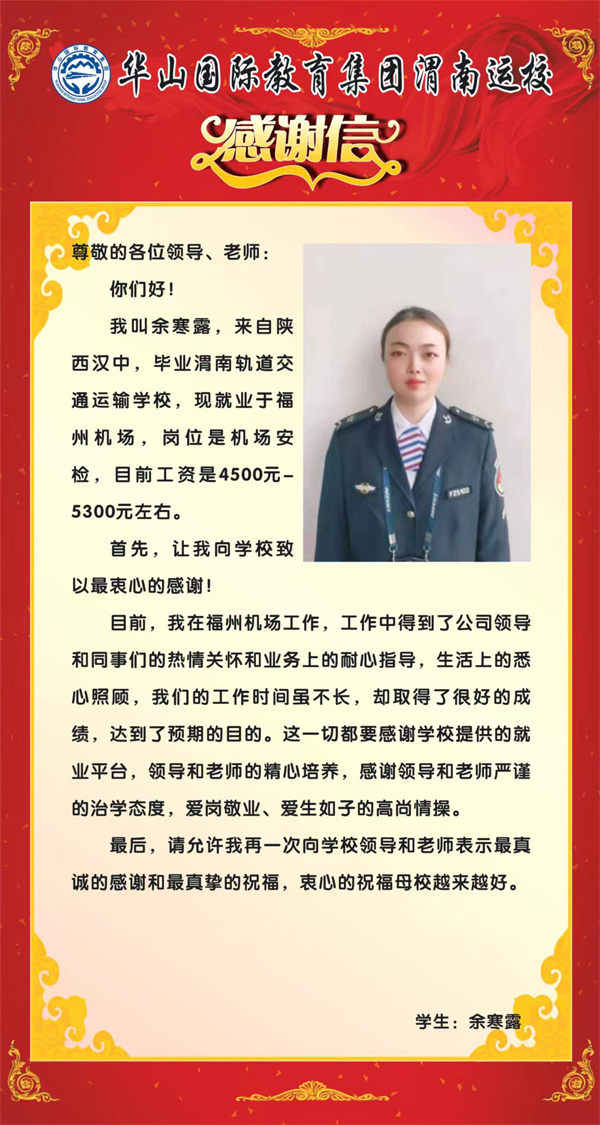 安置到福州機場的我校優(yōu)秀畢業(yè)生余寒露
