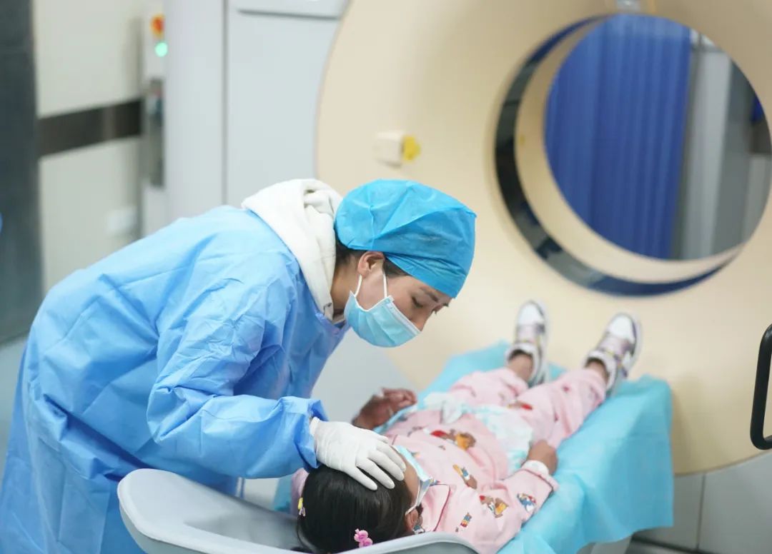 2022年5月12日,南醫(yī)大二附院護士安慰準(zhǔn)備接受檢查的小患者 季春鵬攝 / 本刊