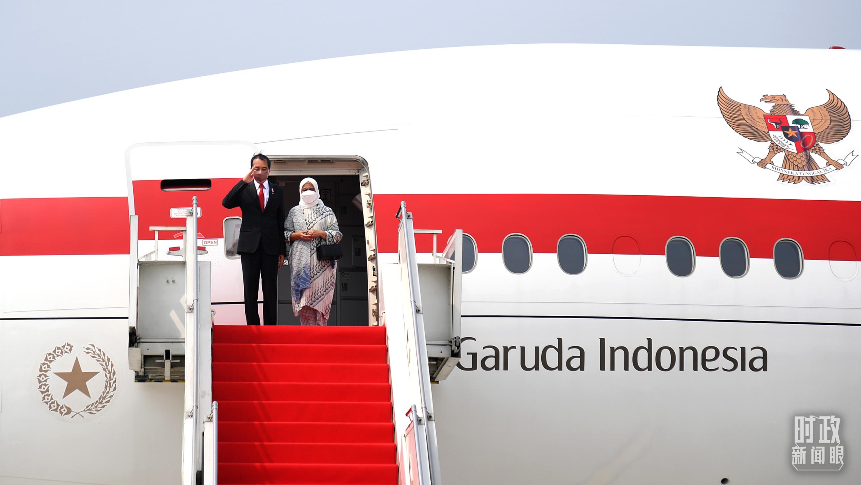 △當(dāng)?shù)貢r間2022年7月25日下午,印尼總統(tǒng)佐科偕夫人乘坐專機啟程前往北京。(圖/視覺中國)