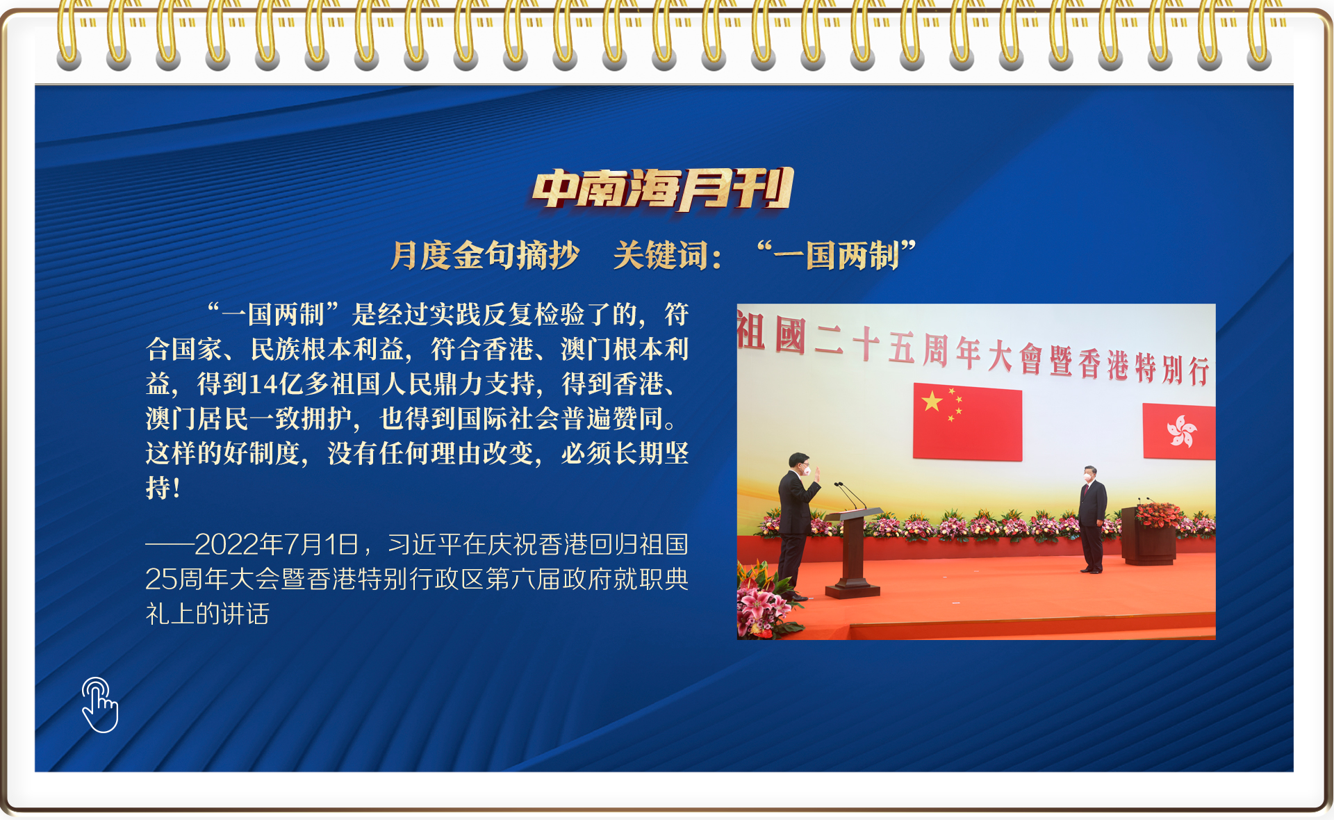 7月1日上午,站在25年前中英兩國政府香港政權(quán)交接儀式的舉行地——香港會展中心,習主席言語鏗鏘:“‘一國兩制’是經(jīng)過實踐反復檢驗了的,符合國家、民族根本利益,符合香港、澳門根本利益。”“這樣的好制度,沒有任何理由改變,必須長期堅持。”“把香港特別行政區(qū)管治權(quán)牢牢掌握在愛國者手中,這是保證香港長治久安的必然要求,任何時候都不能動搖。”