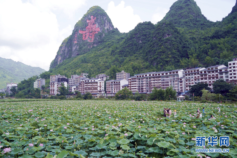 游客在巴馬瑤族自治縣甲篆鎮(zhèn)平安村巴盤屯欣賞荷花。新華網(wǎng) 谷雨 攝