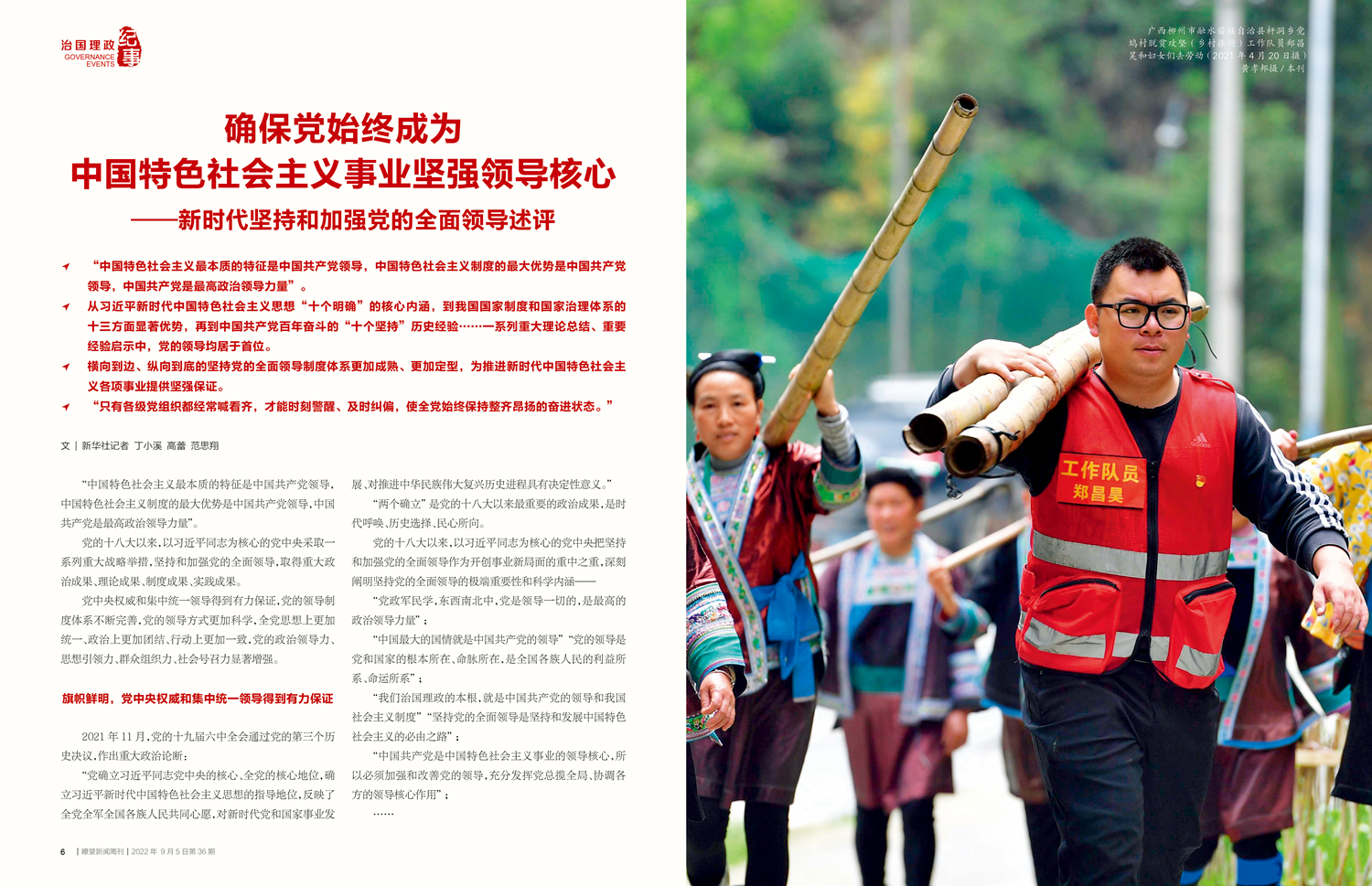“中國(guó)最大的國(guó)情就是中國(guó)共產(chǎn)黨的領(lǐng)導(dǎo)”“黨的領(lǐng)導(dǎo)是黨和國(guó)家的根本所在、命脈所在,是全國(guó)各族人民的利益所系、命運(yùn)所系”;