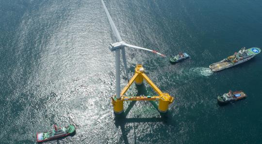 國(guó)內(nèi)首臺(tái)深遠(yuǎn)海浮式風(fēng)電裝備“扶搖號(hào)”從茂名廣港碼頭拖航前往羅斗沙海域進(jìn)行示范應(yīng)用(2022 年 5 月 29 日攝 )劉大偉攝 / 本刊