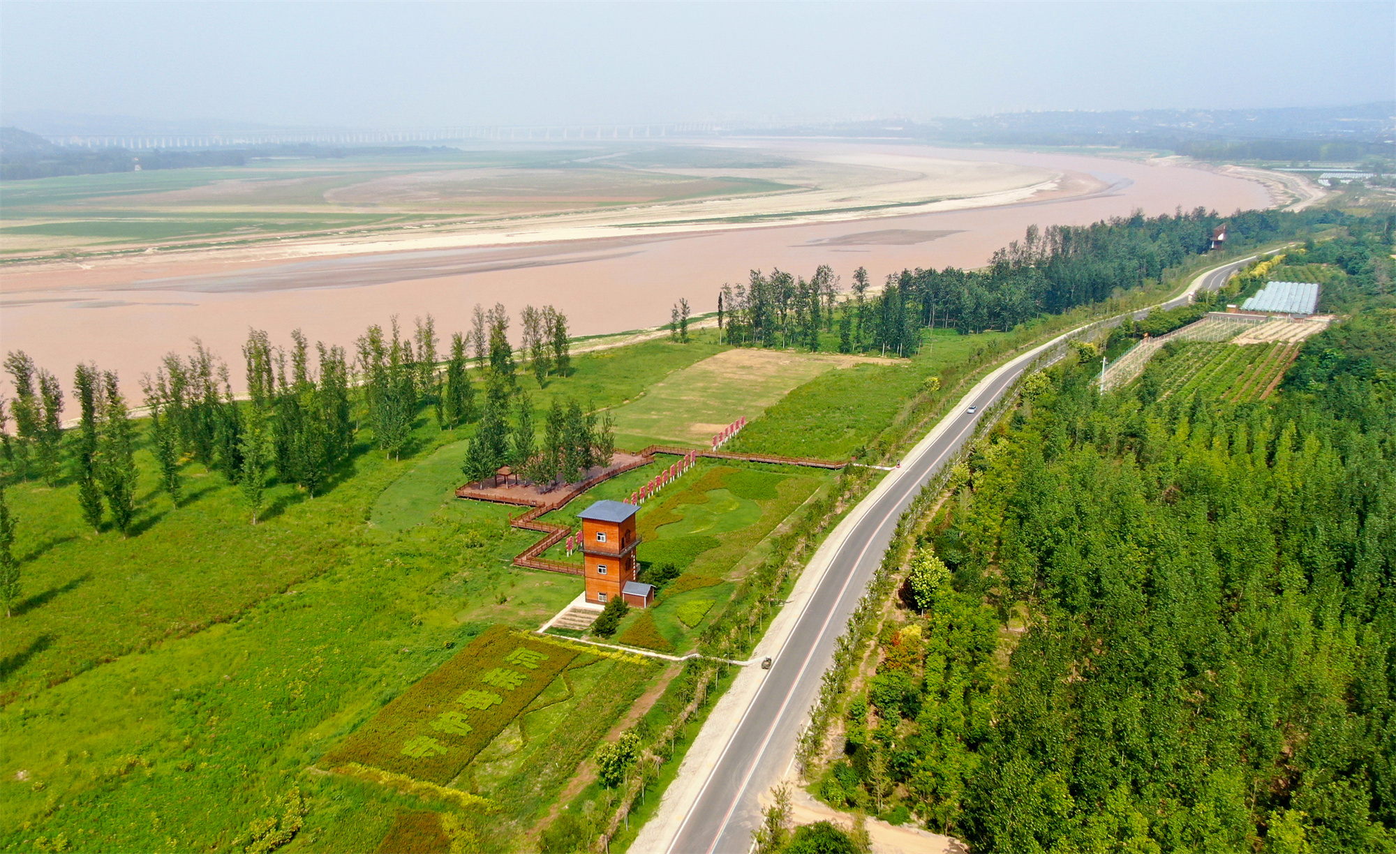這是2022年8月10日在河南省三門峽市拍攝的黃河生態(tài)廊道(無(wú)人機(jī)照片)。新華社記者 郝源 攝