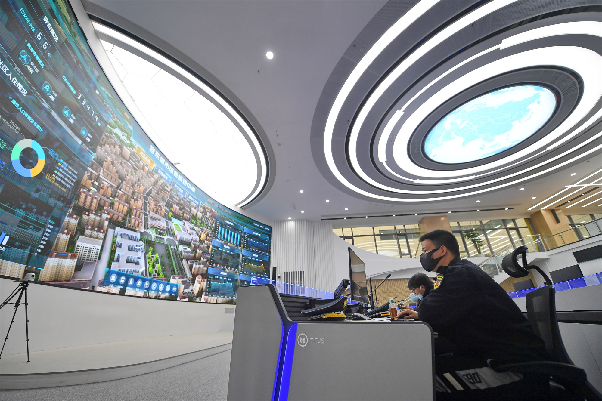 2022年3月29日,工作人員在雄安新區(qū)容東城市運(yùn)營(yíng)管理中心監(jiān)管平臺(tái)工作。新華社記者 朱旭東 攝