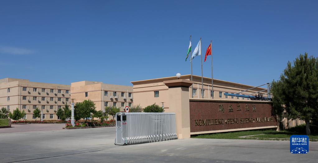這是2018年5月8日拍攝的烏茲別克斯坦鵬盛工業(yè)園入口。鵬盛工業(yè)園是中國民營企業(yè)直接在烏投資建立的首個中烏合資工業(yè)園區(qū)。新華社記者 周良 攝