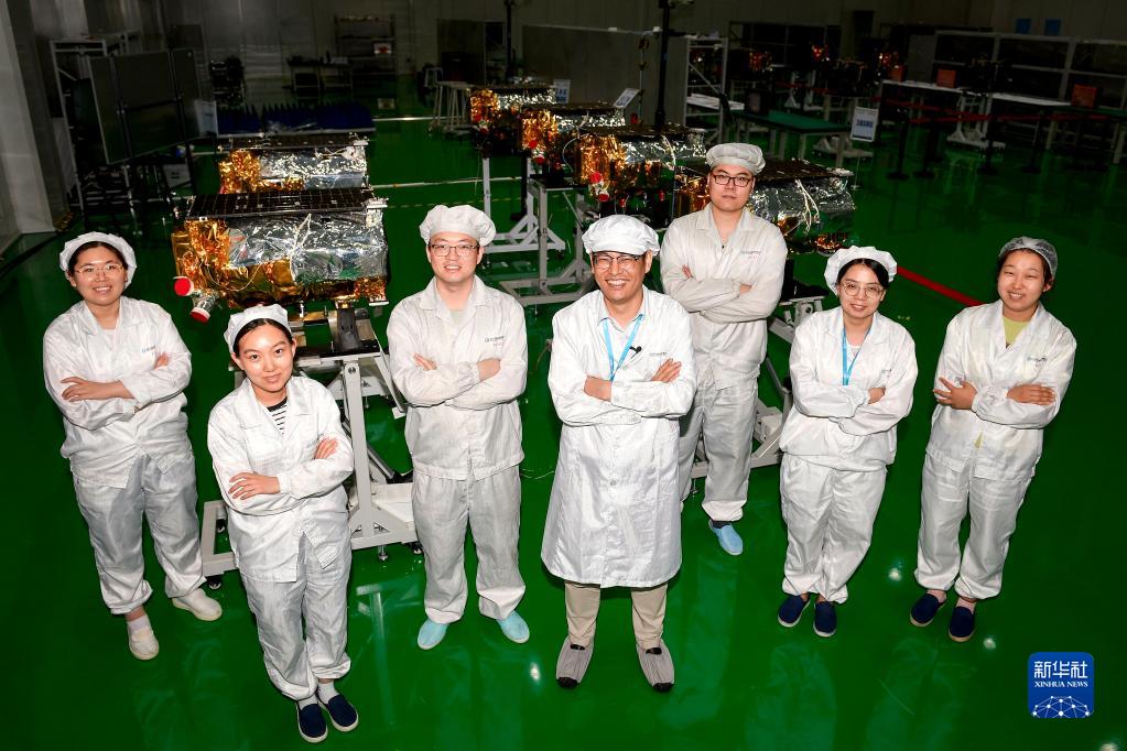 這是“吉林一號(hào)”高分03衛(wèi)星部分研發(fā)調(diào)試人員(2022年8月3日攝)。新華社記者 許暢 攝
