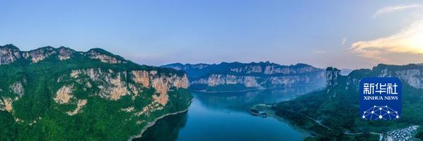 貴州省黔西市新仁苗族鄉(xiāng)化屋村烏江源百里畫廊一景(2022年5月31日攝,無人機照片)。新華社記者 歐東衢 攝