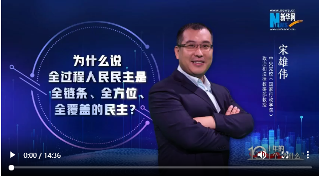 十年非凡成就,蘊(yùn)藏深刻啟示。如何用中國理論闡釋中國實(shí)踐?新華網(wǎng)聯(lián)合中央黨校(國家行政學(xué)院)國家高端智庫,推出“思客講堂·黨校公開課(第三季)”《以“理”服人:十年的十個(gè)“為什么”》。十位黨校青年教師通過十集理論短視頻,帶你探究非凡成就背后的“中國密碼”。本期讓我們跟隨中央黨校(國家行政學(xué)院)政法教研部教授宋雄偉,感受全過程人民民主在中國的生動(dòng)實(shí)踐。