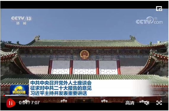 座談會(huì)上,習(xí)近平介紹了中共二十大報(bào)告征求意見稿的形成過程,他希望黨外人士暢所欲言、開誠布公,發(fā)表真知灼見,對中共二十大報(bào)告征求意見稿提出意見。