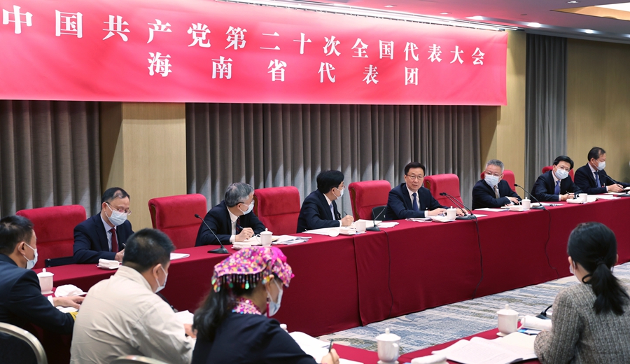 ?。ǘ笫軝?quán)發(fā)布)韓正在參加黨的二十大海南省代表團(tuán)討論時(shí)強(qiáng)調(diào) 深刻領(lǐng)悟“兩個(gè)確立”的決定性意義 堅(jiān)定不移推進(jìn)中華民族偉大復(fù)興歷史進(jìn)程