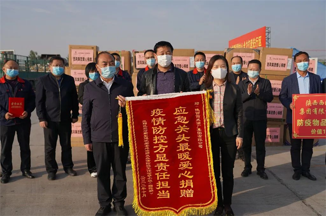 儀式上,西鳳集團公司向鳳翔區(qū)新冠疫情工作領導小組捐贈了價值10萬元的防疫物資1000套。