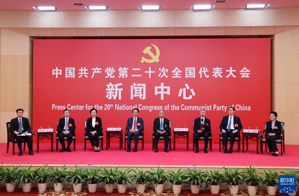 10月19日,中國共產(chǎn)黨第二十次全國代表大會新聞中心舉行集體采訪。重慶、四川、貴州、云南、西藏、陜西、甘肅代表團(tuán)新聞發(fā)言人出席,介紹代表團(tuán)學(xué)習(xí)討論二十大報告情況,并回答記者提問。新華社記者 陳建力 攝