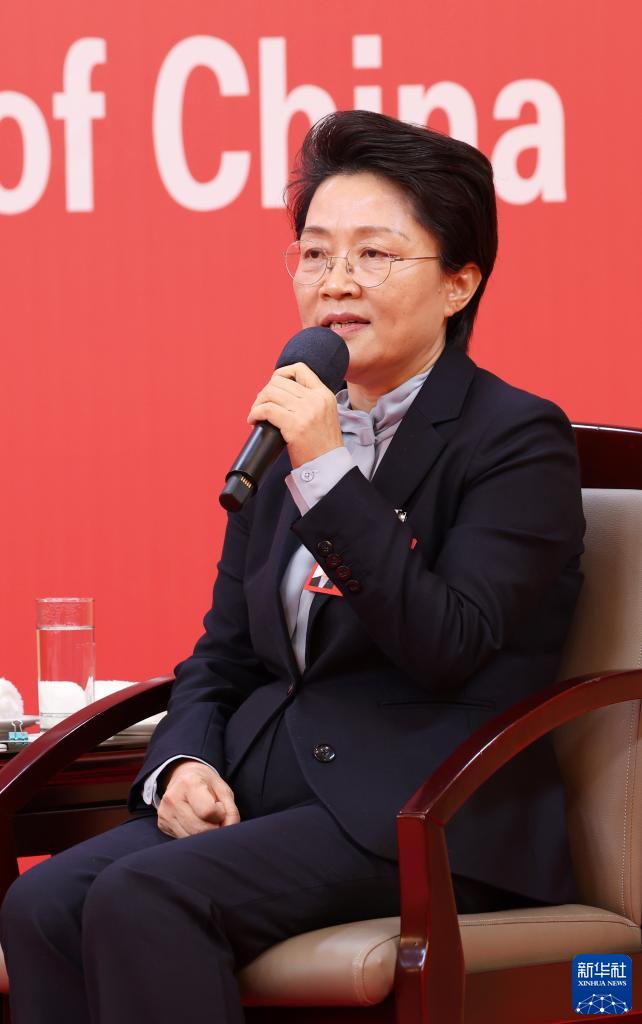 這是甘肅省委常委、宣傳部部長張永霞在回答記者提問。新華社記者 張玉薇 攝