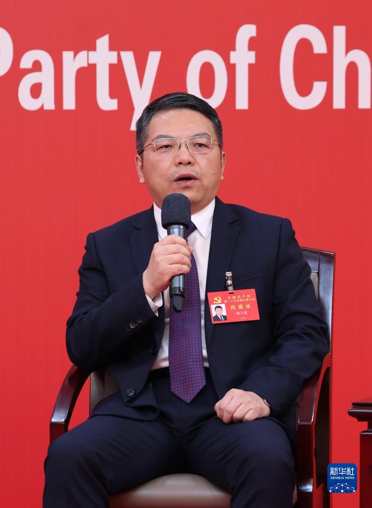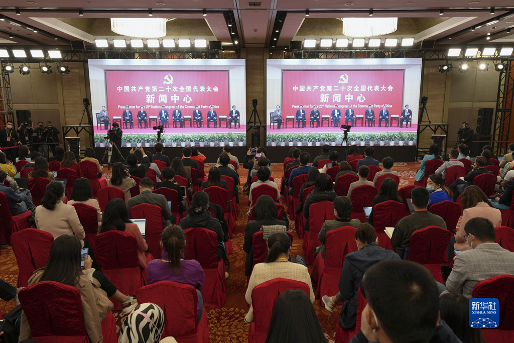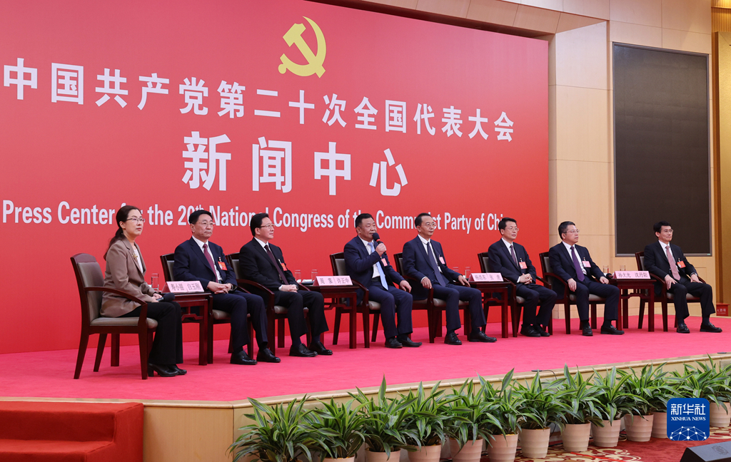 10月19日,中國(guó)共產(chǎn)黨第二十次全國(guó)代表大會(huì)新聞中心舉行集體采訪(fǎng)。山東、河南、湖北、湖南、廣東、廣西、海南代表團(tuán)新聞發(fā)言人出席,介紹代表團(tuán)學(xué)習(xí)討論二十大報(bào)告情況,并回答記者提問(wèn)。新華社記者 張玉薇 攝