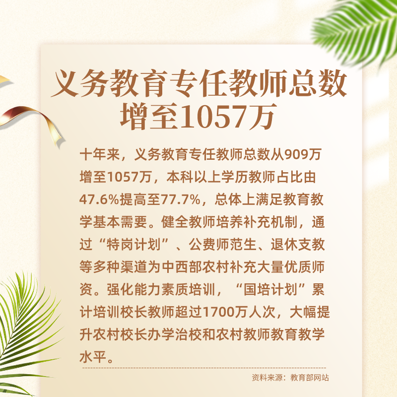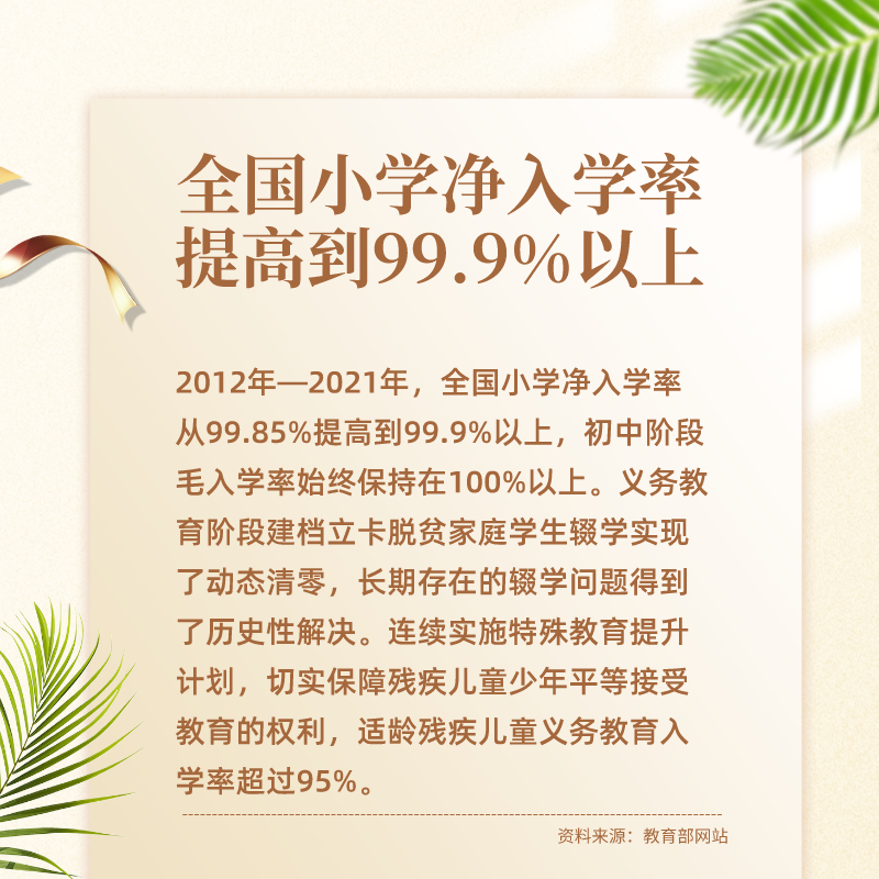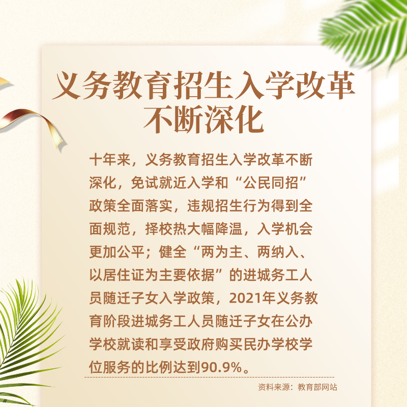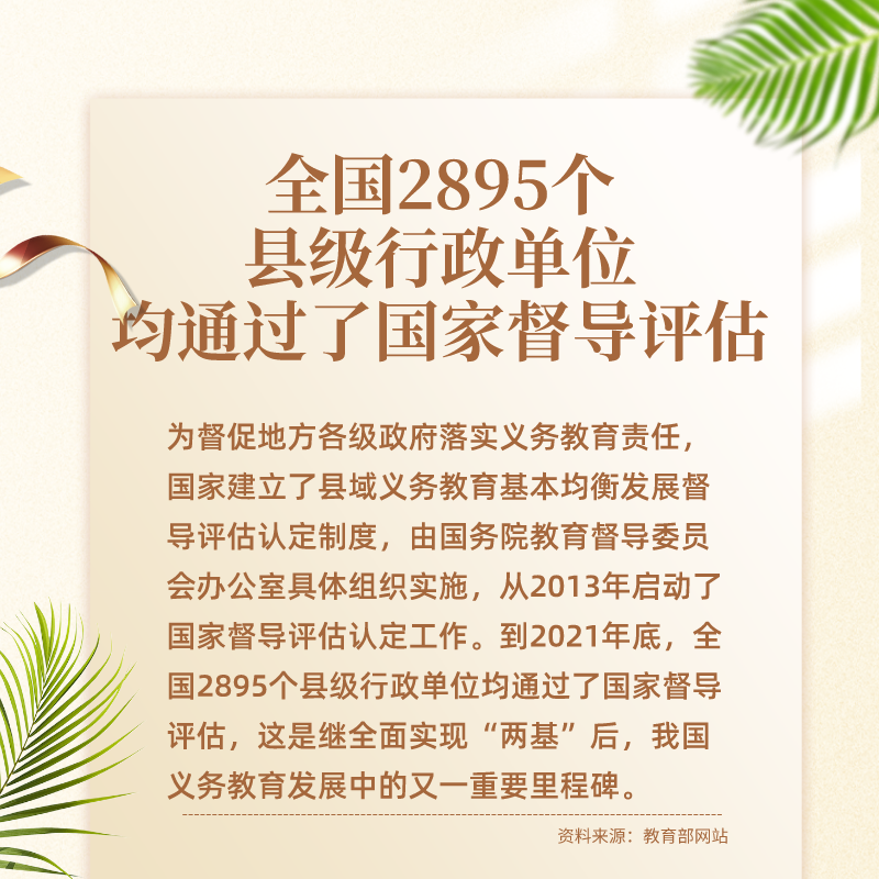 十年來,國家先后出臺多個高規(guī)格的重磅文件,各級黨委政府認(rèn)真落實中央要求,各級教育部門和中小學(xué)校積極作為,推動義務(wù)教育取得歷史性成就。尤其是這十年間,在全面普及的基礎(chǔ)上,實現(xiàn)縣域基本均衡發(fā)展,成為我國義務(wù)教育發(fā)展史上又一座重要的里程碑。