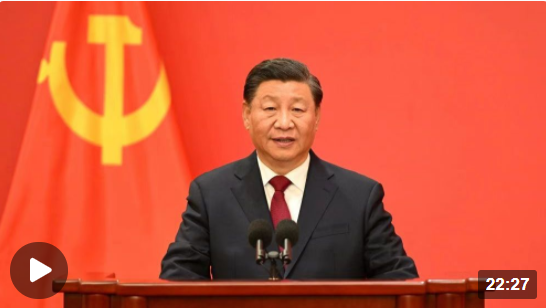 在中國共產(chǎn)黨第二十屆中央委員會(huì)第一次全體會(huì)議上當(dāng)選的中共中央總書記習(xí)近平和中共中央政治局常委李強(qiáng)、趙樂際、王滬寧、蔡奇、丁薛祥、李希,23日中午在人民大會(huì)堂同采訪中共二十大的中外記者見面。習(xí)近平發(fā)表重要講話。
