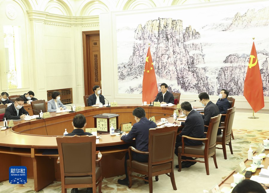 全國人大常委會黨組副書記王晨,全國人大常委會黨組成員曹建明、張春賢、沈躍躍、吉炳軒、艾力更·依明巴海、王東明、白瑪赤林、楊振武參加會議。