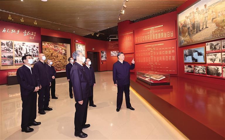 10月27日,中共中央總書記、國家主席、中央軍委主席習(xí)近平帶領(lǐng)中共中央政治局常委李強(qiáng)、趙樂際、王滬寧、蔡奇、丁薛祥、李希,瞻仰延安革命紀(jì)念地。這是習(xí)近平等在延安革命紀(jì)念館,參觀《偉大歷程——中共中央在延安十三年歷史陳列》。 新華社記者 鞠鵬攝