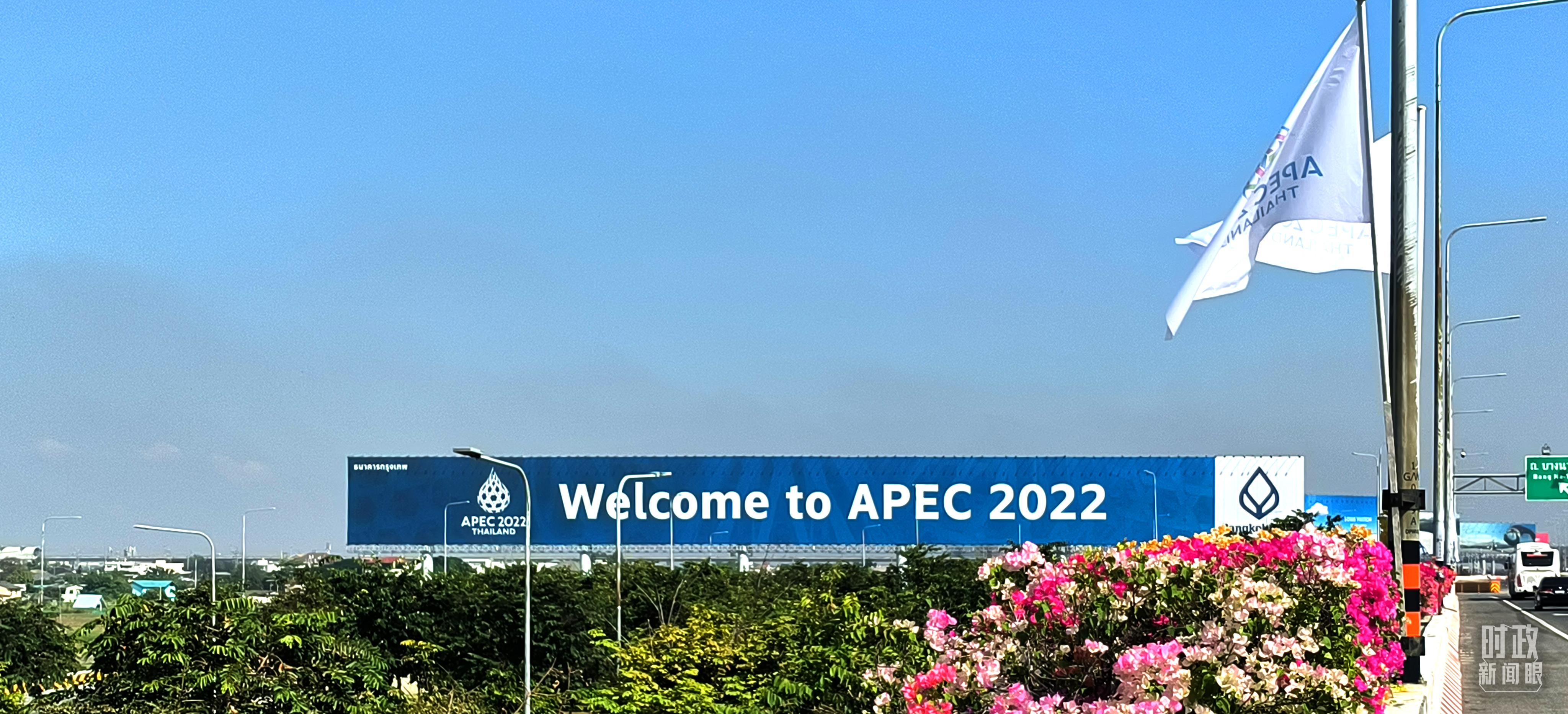 △泰國(guó)曼谷,APEC會(huì)議歡迎標(biāo)語(yǔ)。(總臺(tái)央視記者范凱拍攝)