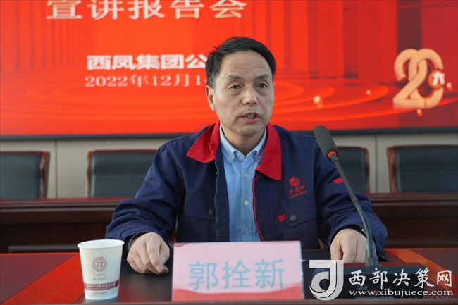 西部決策網訊(記者劉玉 韓宗憲 通訊員 張?zhí)炝ⅲ?2月14日,西鳳集團公司召開黨的二十大精神專題宣講會。西鳳集團公司黨委書記、董事長,股份公司董事長張正,公司領導班子成員,各黨支部書記、基層聯(lián)系點所在支部黨員、黨委系統(tǒng)工作人員共70余人參加會議。集團公司黨委副書記郭拴新主持會議。