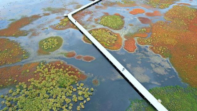 隨著季節(jié)變換,花湖湖面呈現(xiàn)出五顏六色、色彩斑斕的景色,因此而得名。進(jìn)入花湖生態(tài)旅游區(qū),不僅可以將天水相連的草原濕地原始自然風(fēng)光盡收眼底,還可以欣賞到人與大自然和諧相處的美好畫面,每當(dāng)被稱為“鳥類大熊貓”的