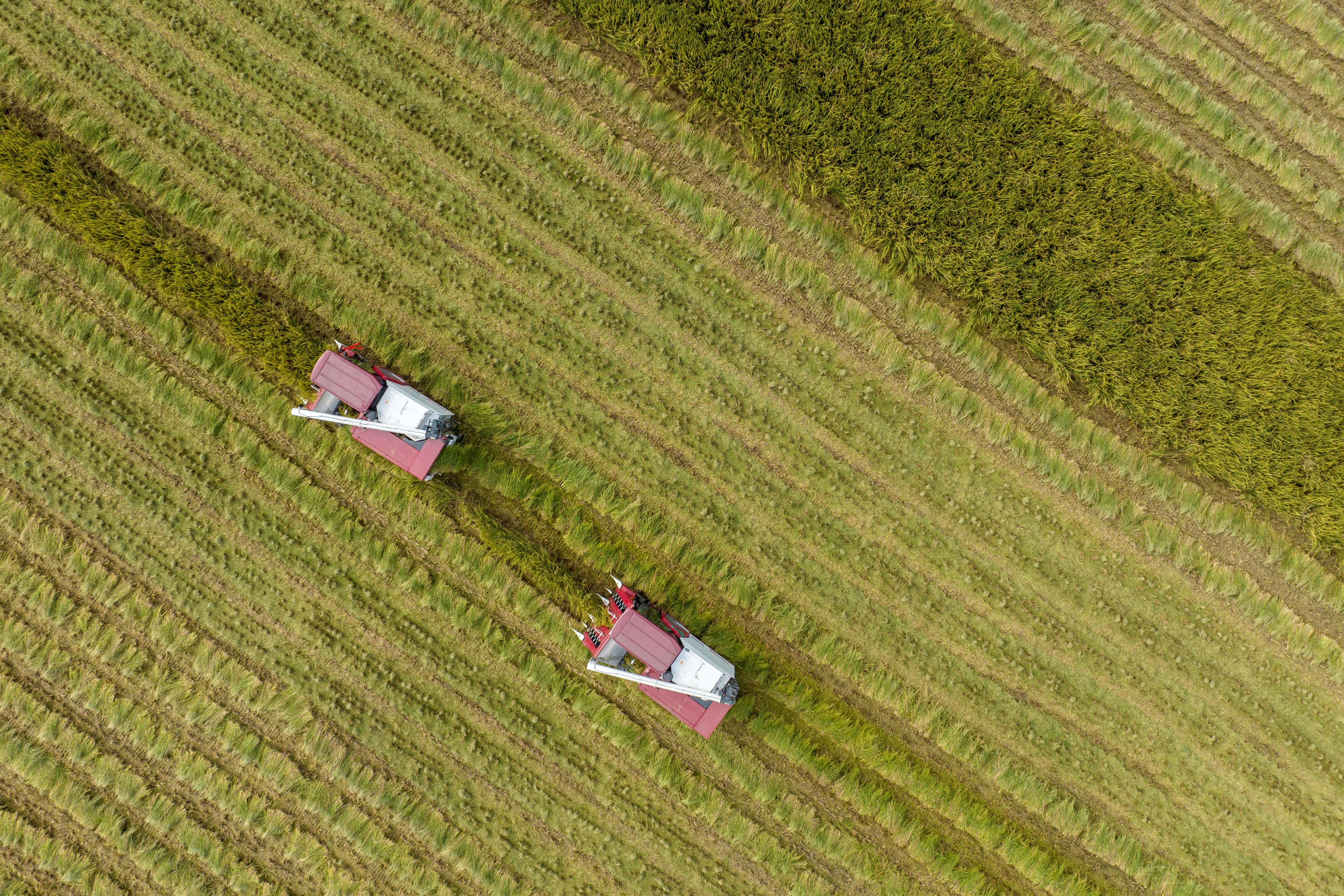 △2022年8月15日,四川眉山,收割機在太和鎮(zhèn)永豐村稻田收割水稻。