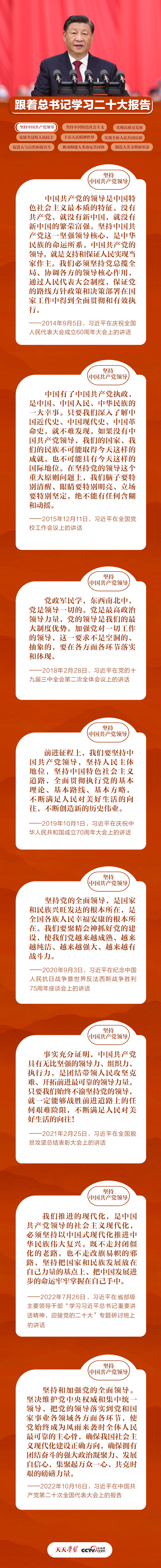 新征程是充滿光榮和夢想的遠(yuǎn)征。藍(lán)圖已經(jīng)繪就,號角已經(jīng)吹響。讓我們重溫總書記關(guān)于堅持中國共產(chǎn)黨領(lǐng)導(dǎo)的重要論述,團(tuán)結(jié)在黨的旗幟下,一起努力創(chuàng)造更加燦爛的明天。