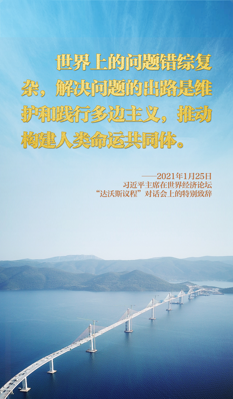 “我們今天所作的每一個(gè)抉擇、采取的每一項(xiàng)行動(dòng),都將決定世界的未來(lái)。”一次次深刻闡述,一次次真誠(chéng)呼吁,習(xí)近平主席在達(dá)沃斯論壇發(fā)出的聲音穿越時(shí)空,為解決人類(lèi)面臨的共同問(wèn)題貢獻(xiàn)智慧與力量,為變亂交織的世界提供寶貴的確定性和穩(wěn)定性。新時(shí)代中國(guó)將與世界上一切進(jìn)步力量一道,堅(jiān)定維護(hù)和踐行多邊主義,向著構(gòu)建人類(lèi)命運(yùn)共同體的正確方向,讓和平與發(fā)展的陽(yáng)光普照大地,攜手開(kāi)創(chuàng)更加美好的未來(lái)。