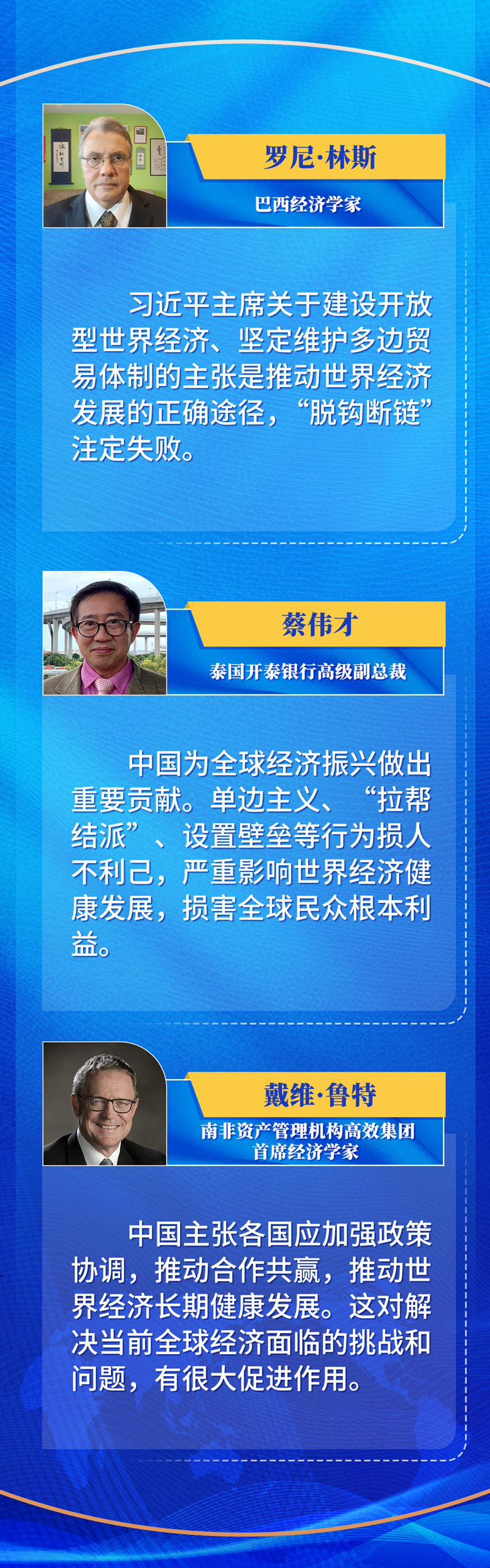 堅(jiān)持拆墻而不筑墻、開(kāi)放而不隔絕、融合而不脫鉤,推動(dòng)構(gòu)建開(kāi)放型世界經(jīng)濟(jì),才能將世界經(jīng)濟(jì)帶出低谷。
