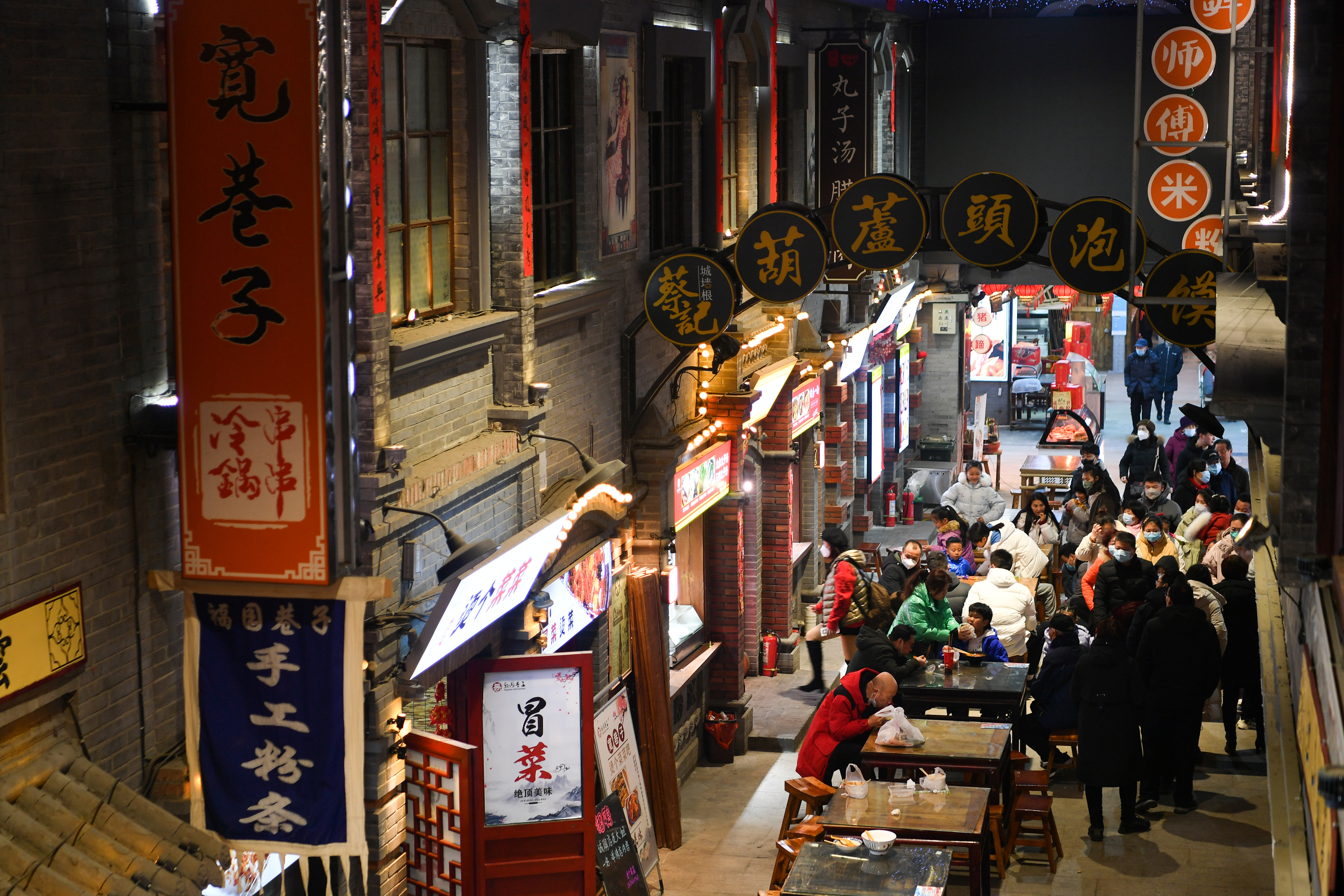 1月24日,市民在位于陜西省咸陽市的福園巷子街區(qū)游覽,品味特色美食。新華社記者 張博文 攝