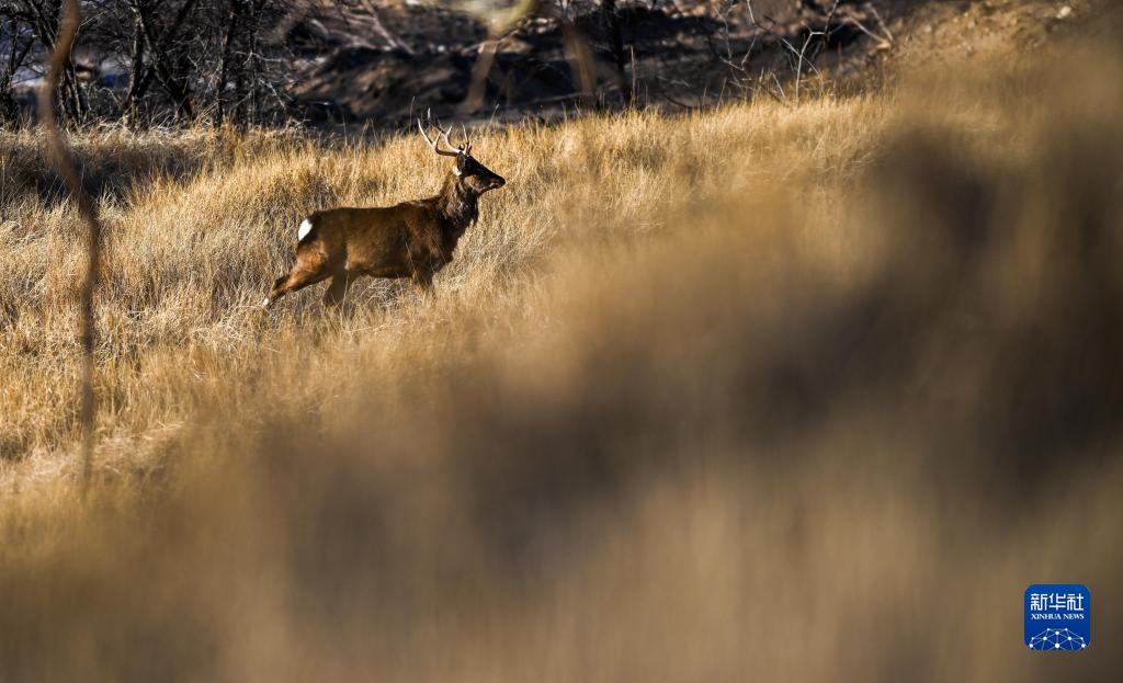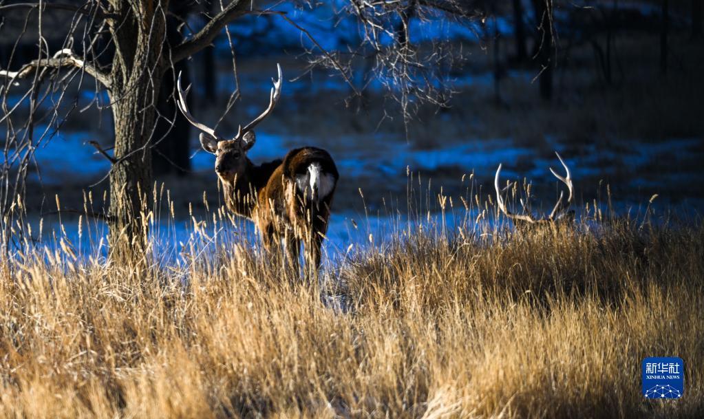 1月29日,一只馬鹿在灤河源國家森林公園內(nèi)覓食。新華社記者 劉懿德 攝