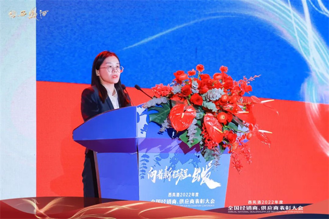 周艷花作題為《強基固本 以高標準引領營銷高質(zhì)量發(fā)展,奮揖揚帆 以高效能推進西鳳邁上新征程》2022年營銷工作總結(jié)暨2023年營銷工作規(guī)劃