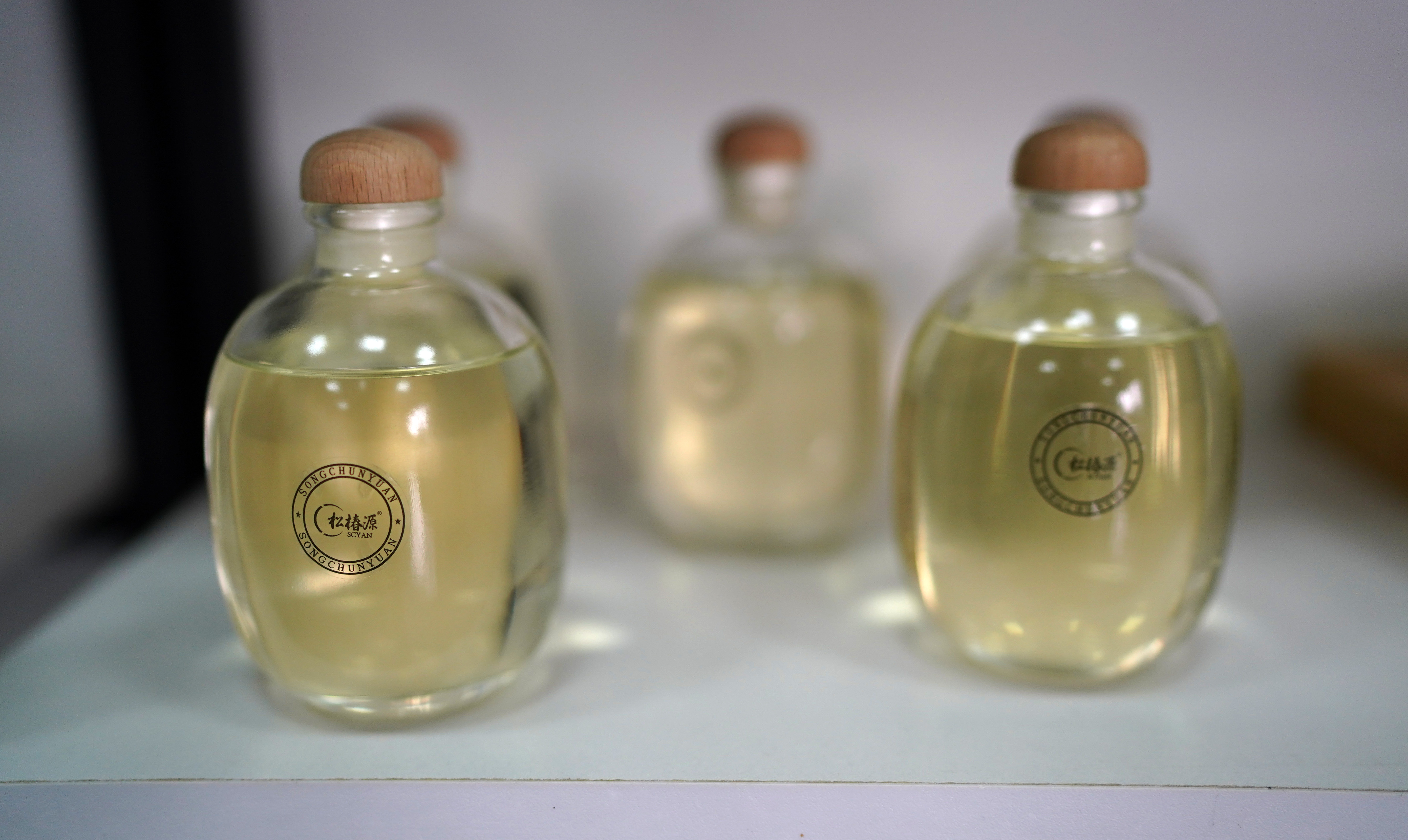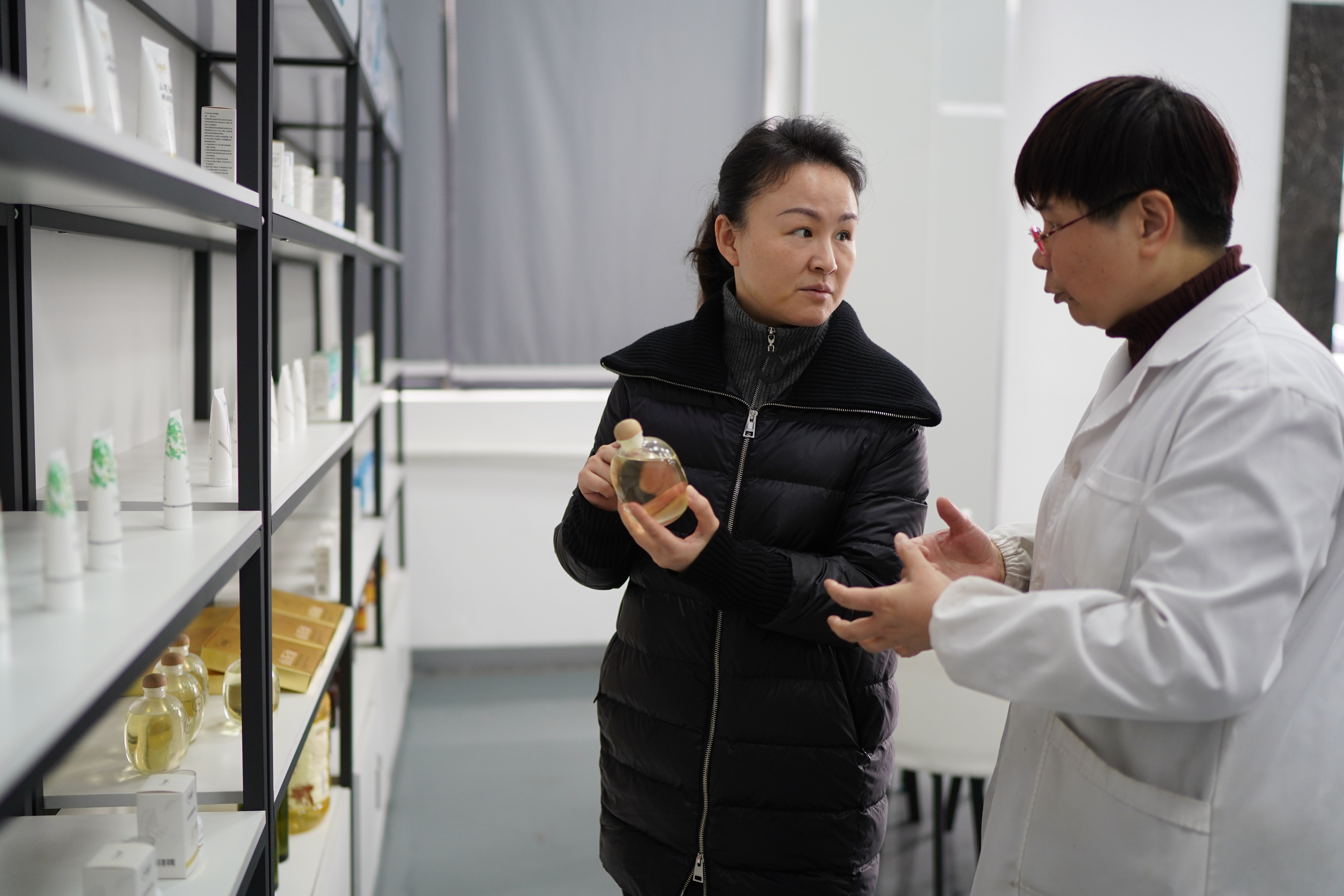這是2月24日在位于江西贛州市章貢區(qū)的贛州哈克生物科技有限公司拍攝的茶油護(hù)膚產(chǎn)品。新華社記者 周密 攝