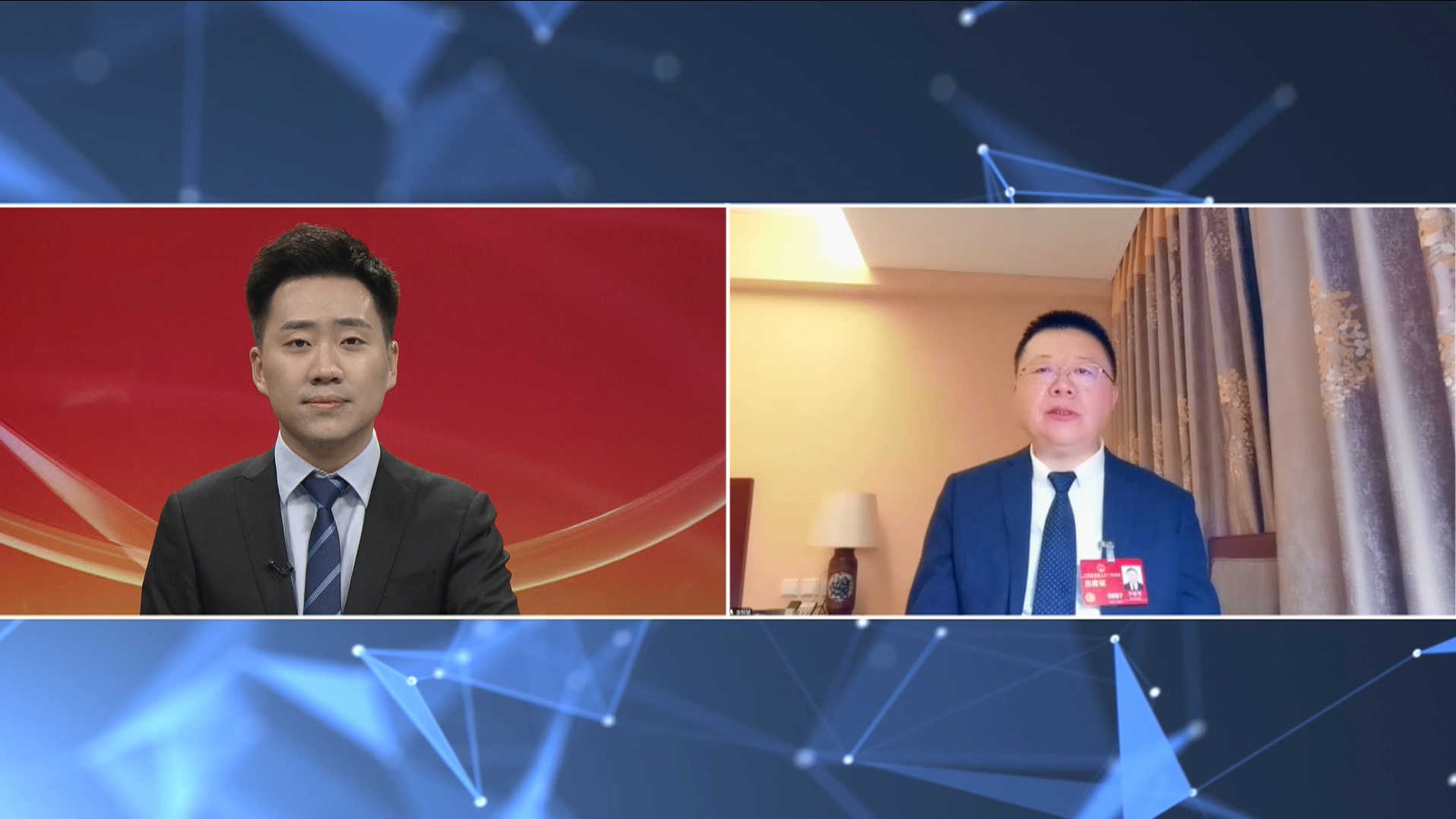 李校堃代表(圖右)接受人民網(wǎng)專訪。視頻截圖