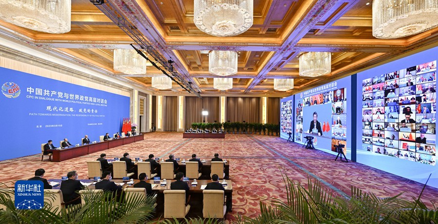 3月15日,中共中央總書記、國(guó)家主席習(xí)近平在北京出席中國(guó)共產(chǎn)黨與世界政黨高層對(duì)話會(huì),并發(fā)表題為《攜手同行現(xiàn)代化之路》的主旨講話。新華社記者 劉彬 攝
