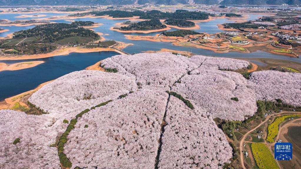 這是3月21日拍攝的貴州省貴安新區(qū)櫻花園(無(wú)人機(jī)全景照片)。新華社記者 楊文斌 攝