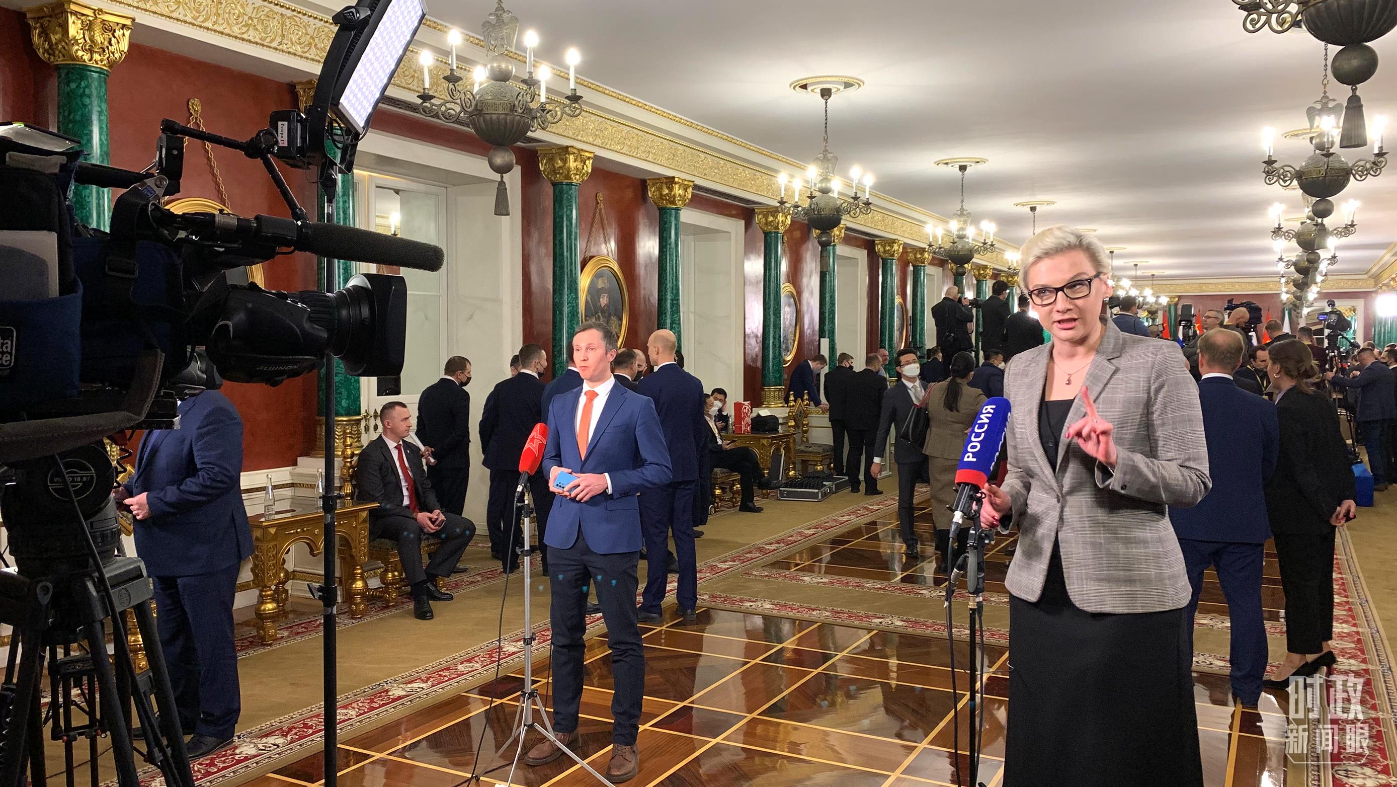 △習(xí)主席和普京總統(tǒng)舉行大范圍會談的會場。(總臺央廣記者潘毅拍攝)