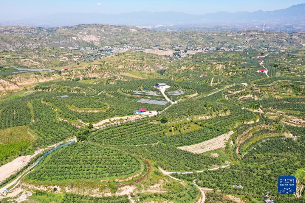這是位于山西省汾西縣的一處梨園(2022年9月12日攝,無人機照片)。新華社發(fā)(趙偉攝)