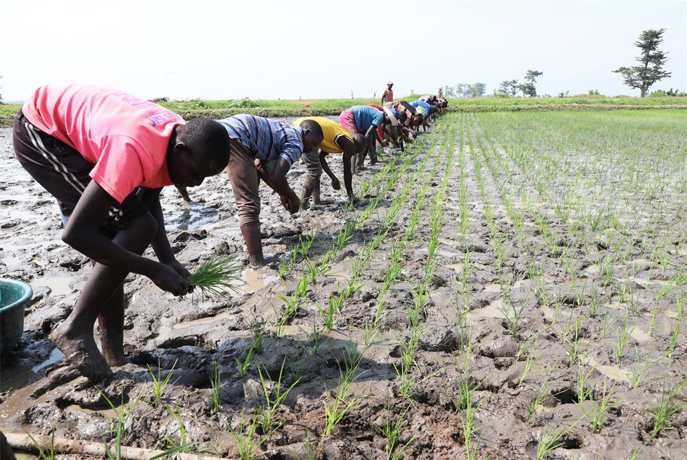 2022年10月29日,在布隆迪布班扎省基航加縣,農民種植雜交水稻。新華社記者 董江輝 攝