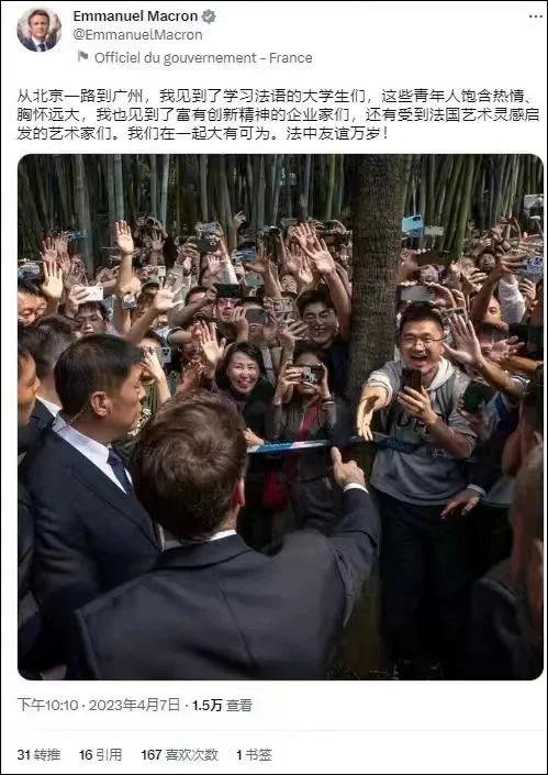 有專家認(rèn)為,馬克龍總統(tǒng)訪華期間,中法雙方能夠繼續(xù)推進(jìn)經(jīng)貿(mào)合作,而且不僅鞏固傳統(tǒng)領(lǐng)域的合作,還開(kāi)拓新的領(lǐng)域,實(shí)際上這個(gè)共識(shí)和行動(dòng)本身就是對(duì)美國(guó)所謂“脫鉤斷鏈”這種政策的一個(gè)強(qiáng)有力的回應(yīng)。
