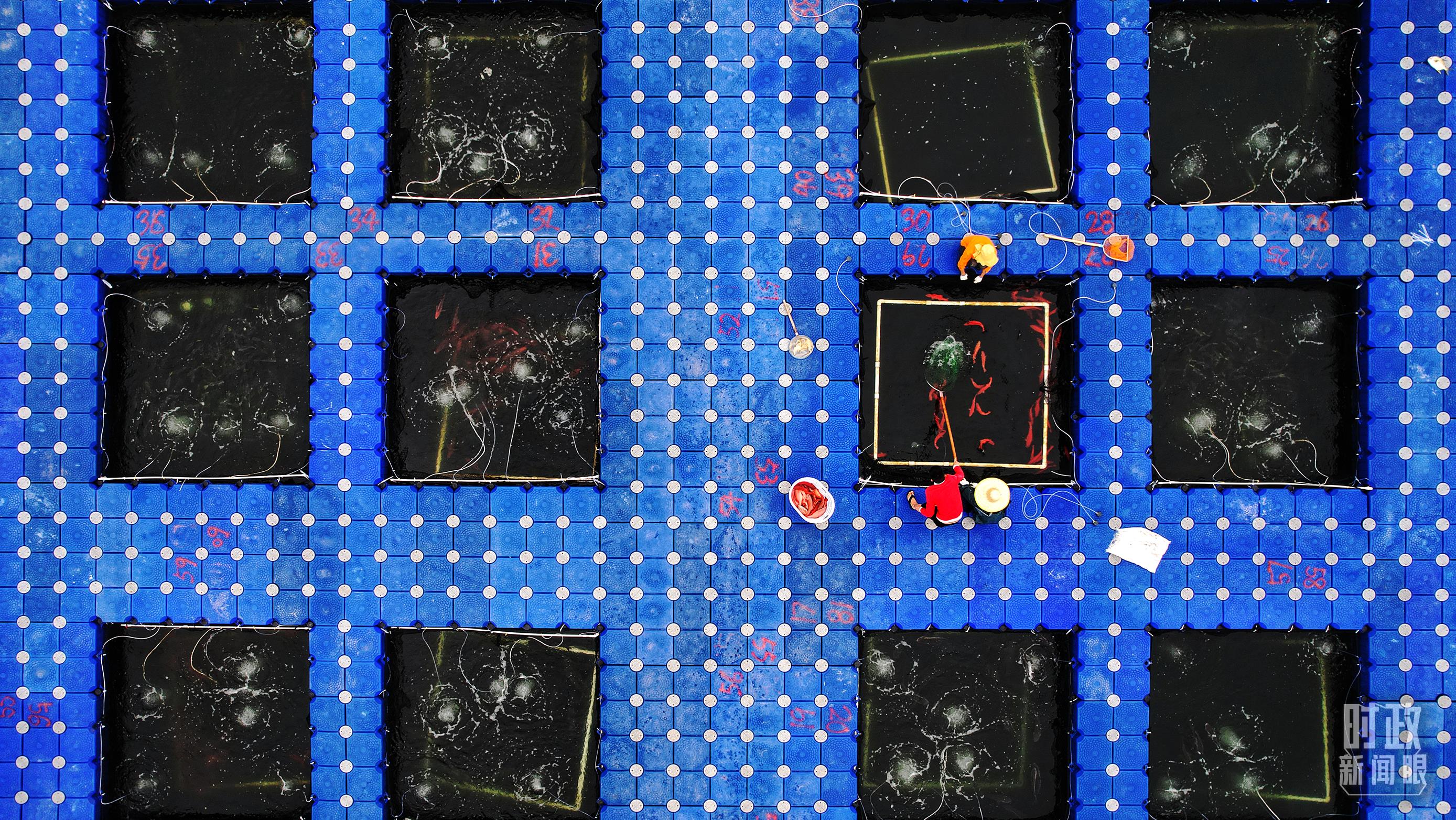 △浮筒式池塘網(wǎng)箱。(總臺央視記者劉琦拍攝)
