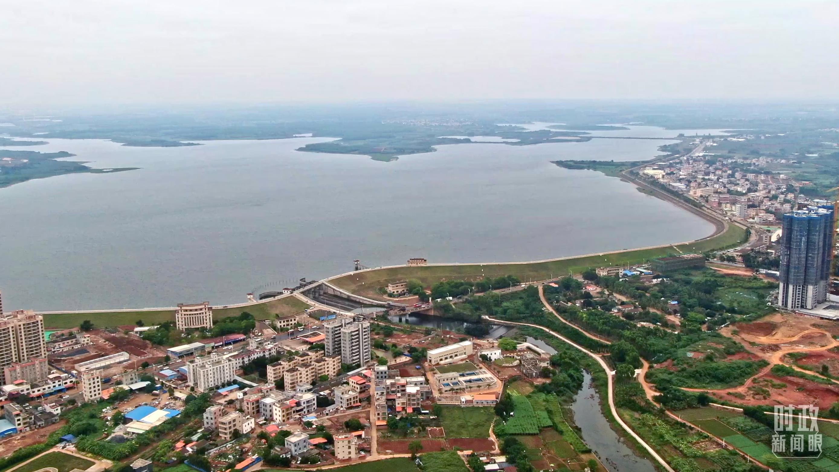 △水庫與沿岸城市航拍。(總臺央視記者鄧裕達拍攝)