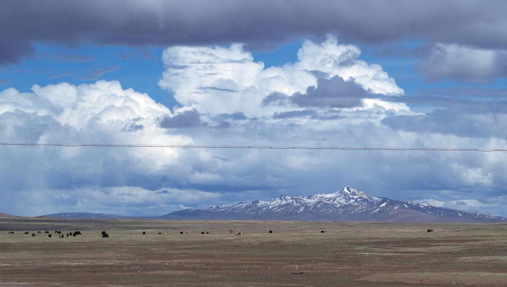 這是6月14日在長江源地區(qū)沱沱河附近拍攝的景色。