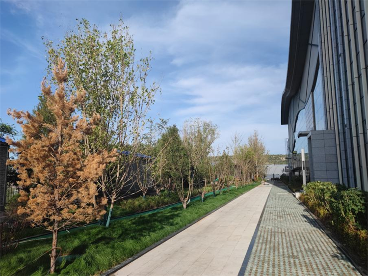 本次景觀提升工程主要對職工餐廳、文體中心北側的破損場地進行了破除,對地平進行修整后,重新種植了白皮松、叢生五角楓、白蠟、紅瑞木、水蠟等苗木。在留出人行通道的基礎上,設計了塑膠跑道,其余部分鋪設了草坪,并對區(qū)域圍墻進行了修護。考慮到職工鍛煉休閑的實際需求,本次景觀提升工程還新安裝了一座公共廁所,設置了專門的吸煙區(qū)。